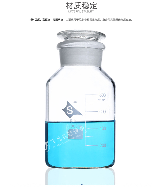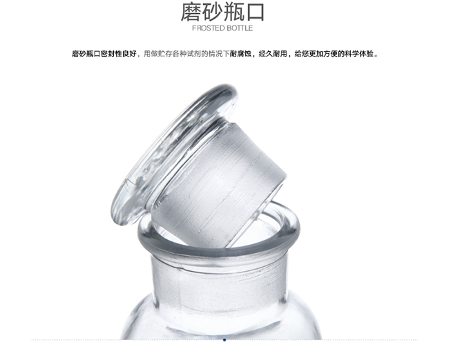 主要适用于贮放各种固定物质,及各种需要避光物质存放。瓶口内部为磨砂设计,保持密封,防止物质外漏。