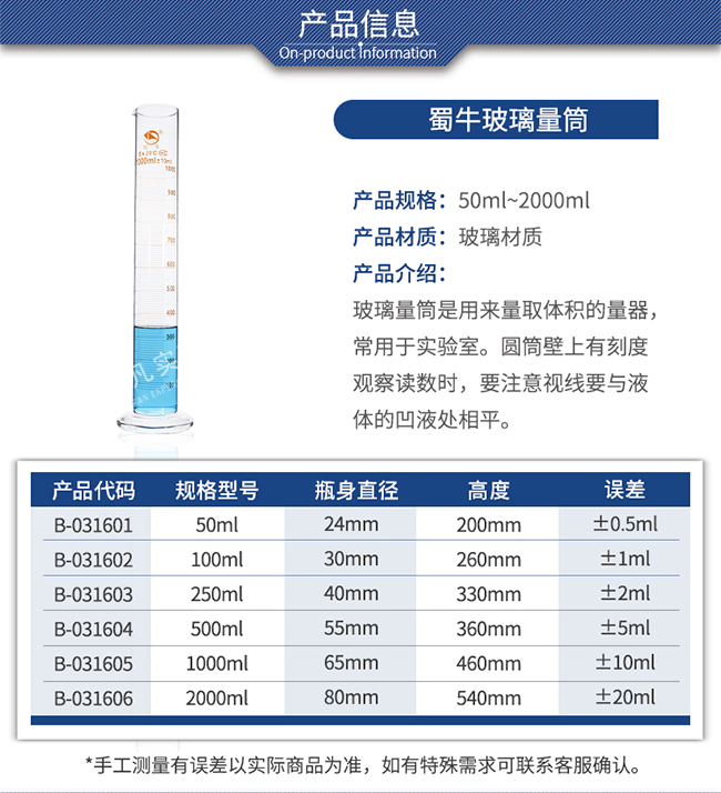 量取各种不同体积的液体之用
