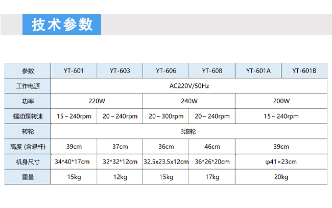 高度(含悬杆)39cm,蠕动泵转速:15~240rpm