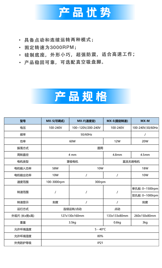 振荡方式圆周,周转直径[mm]4.8,运行方式点动,功率 [W]12