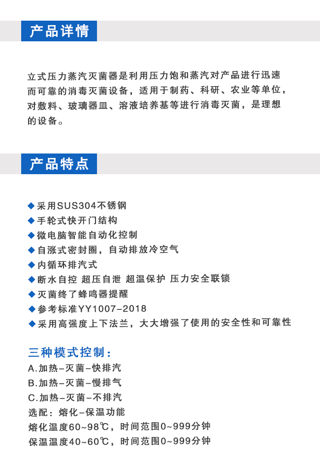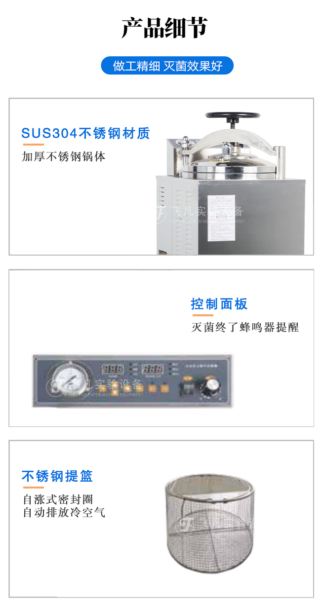全自动控制/双层不锈钢/自涨式密封圈 最高工作压力/温度:0.22MPa/135℃ 气体为内循环排汽式/带3升集气瓶